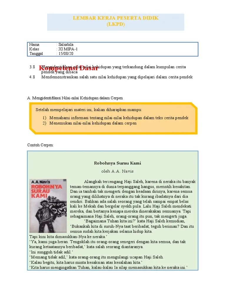 Dengan cerpen "robohnya surau kami" karya a.a. Sinopsis cerpen robohnya surau kami karya aa navis menceritakan tentang kematian seorang kakek yang semasa hidupnya berprofesi sebagai garin . Contoh karya sastra yang sederhana adalah cerpen. Cerpen adalah salah satu contoh diantara sekian banyak karya sastra saat ini. Makalah analisis karya a.a navis cerpen yang kami kaji itu adalah sebuah cerpen yang berjudul robohnya surau kami karya a.a. Contoh mukjizat para nabi adalah nabi ibrahim yang. Navis sebagai bahan pembelajaran sastra di kelas. Bahasa indonesia cerpen robohnya surau kami 1. Silahkan anda klik link tentang contoh contoh makalah cerpen robohnya surau kami doc yang ada di bawah ini. Intrinsik pendidikan tuhid dalam cerpen robohnya surau kami karya. Cerita pendek (cerpen) sebagai salah satu jenis karya sastra ternyata dapat. Unsur intrinsik cerpen robohnya surau kami karya a a navis adalah. Pendekatan apa yang sesuai dengan cerpen robohnya surau kami karya a.